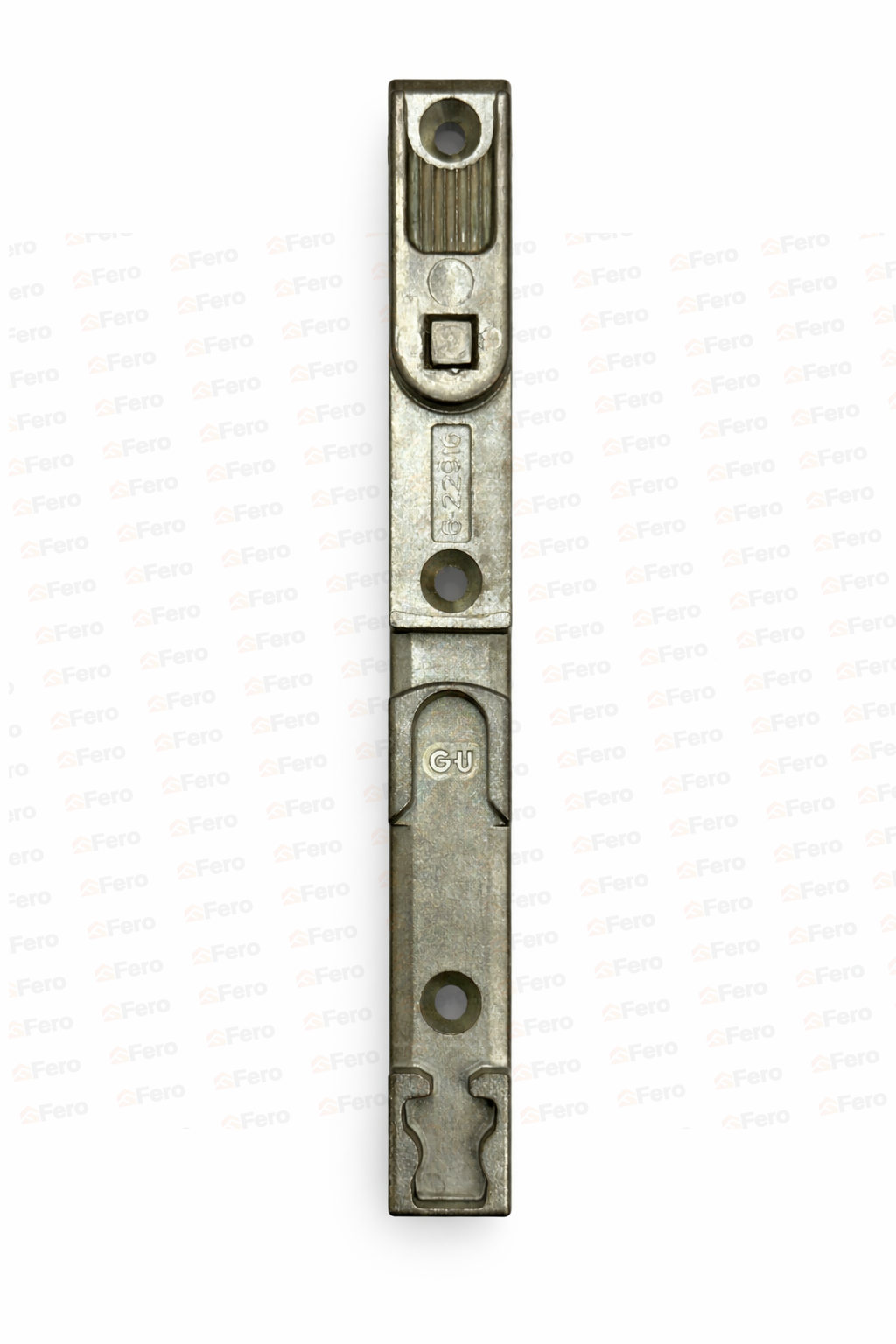 Zăvor inferior original GU, compatibil exclusiv cu sistemele de feronerie GU. Utilizat pentru ferestrele secundare (a doua fereastră care se deschide la nevoie), montate pe profile PVC consacrate.