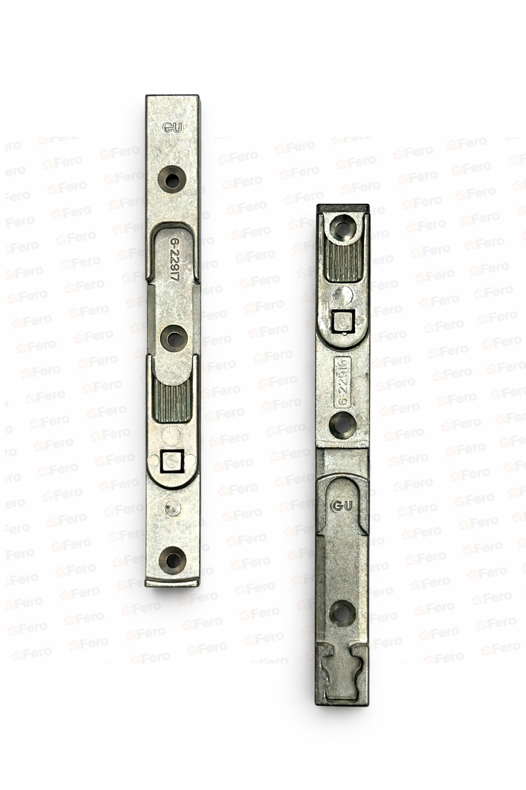 Set zăvoare originale GU (superior și inferior), compatibile doar cu sistemele de feronerie GU. Recomandate pentru ferestrele secundare, asigură blocarea completă și stabilitatea canatului.